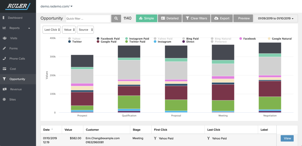 So, in the Ruler dashboard, you’ll have access to an Opportunity report.
