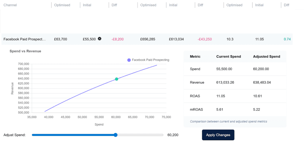 Your marketing analytics team runs a model and recommends increasing spend to £60,200.