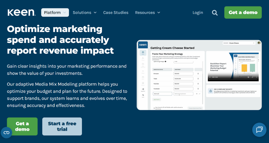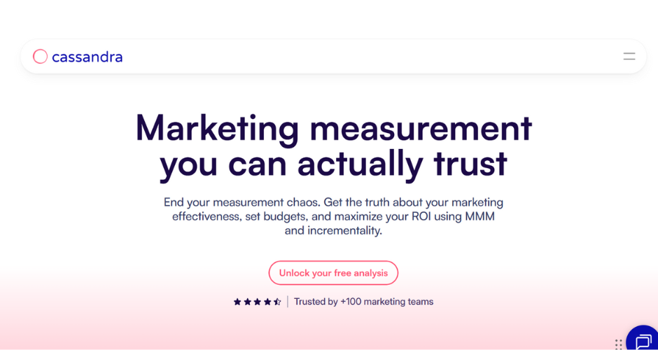 Unlike other MMM tools that can take a long time to set up, Cassandra claims it can get you started in just 3 weeks. Plus, it helps you test different marketing mixes in the real world to see what works best.