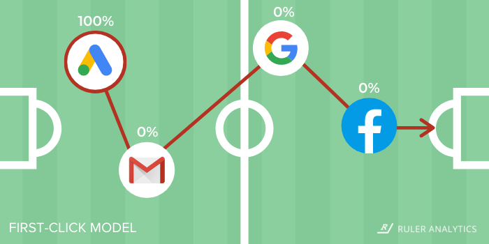First-click attribution, however, doesn’t take into account all of the other touchpoints a customer interacted with along their journey.
