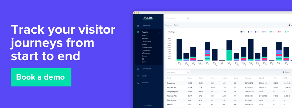 💡 Pro Tip: Ruler is a next-generation measurement solution that uses first-party click tracking and machine learning impression modelling to help marketers measure and validate marketing impact on revenue and optimise for maximum performance. Book a demo to see more.