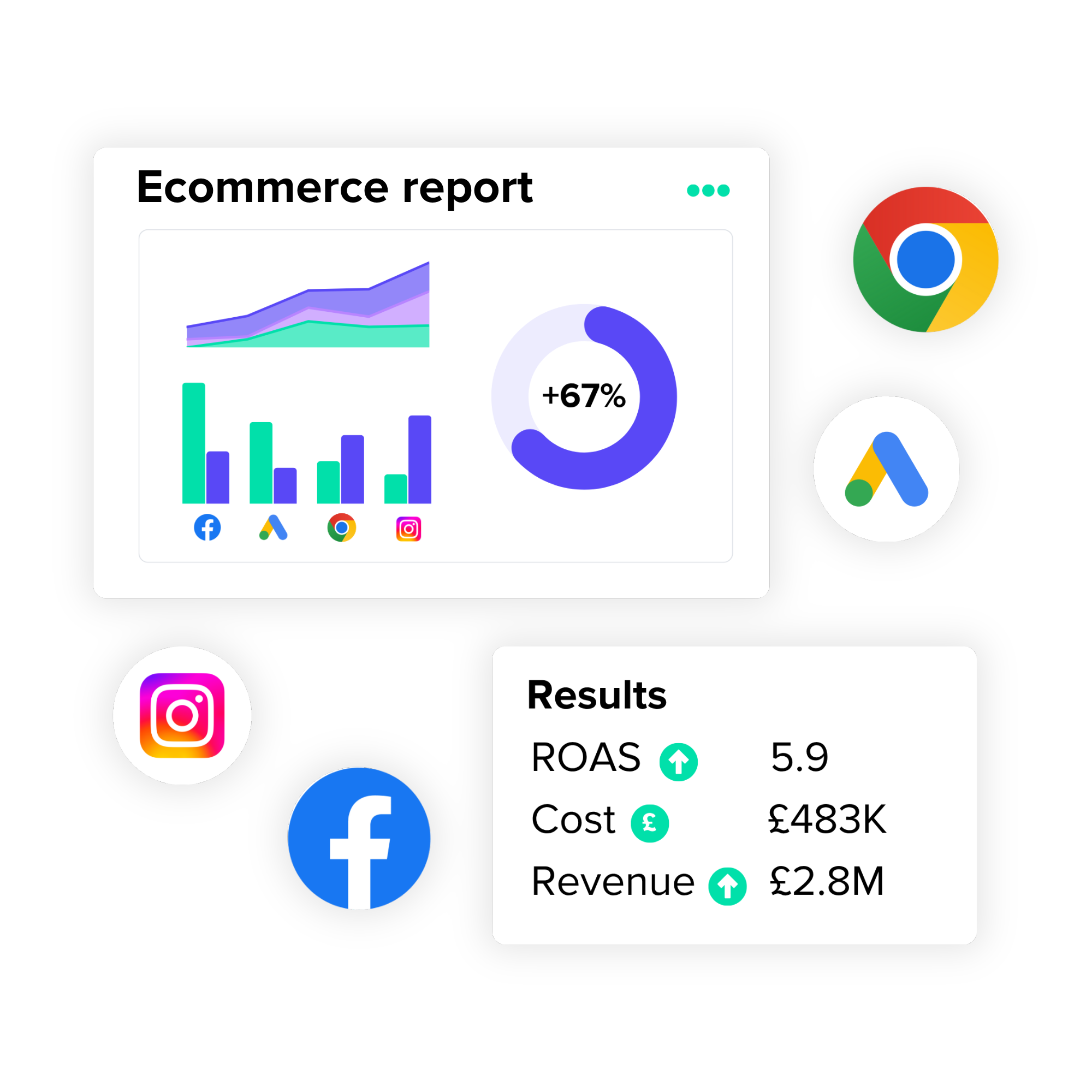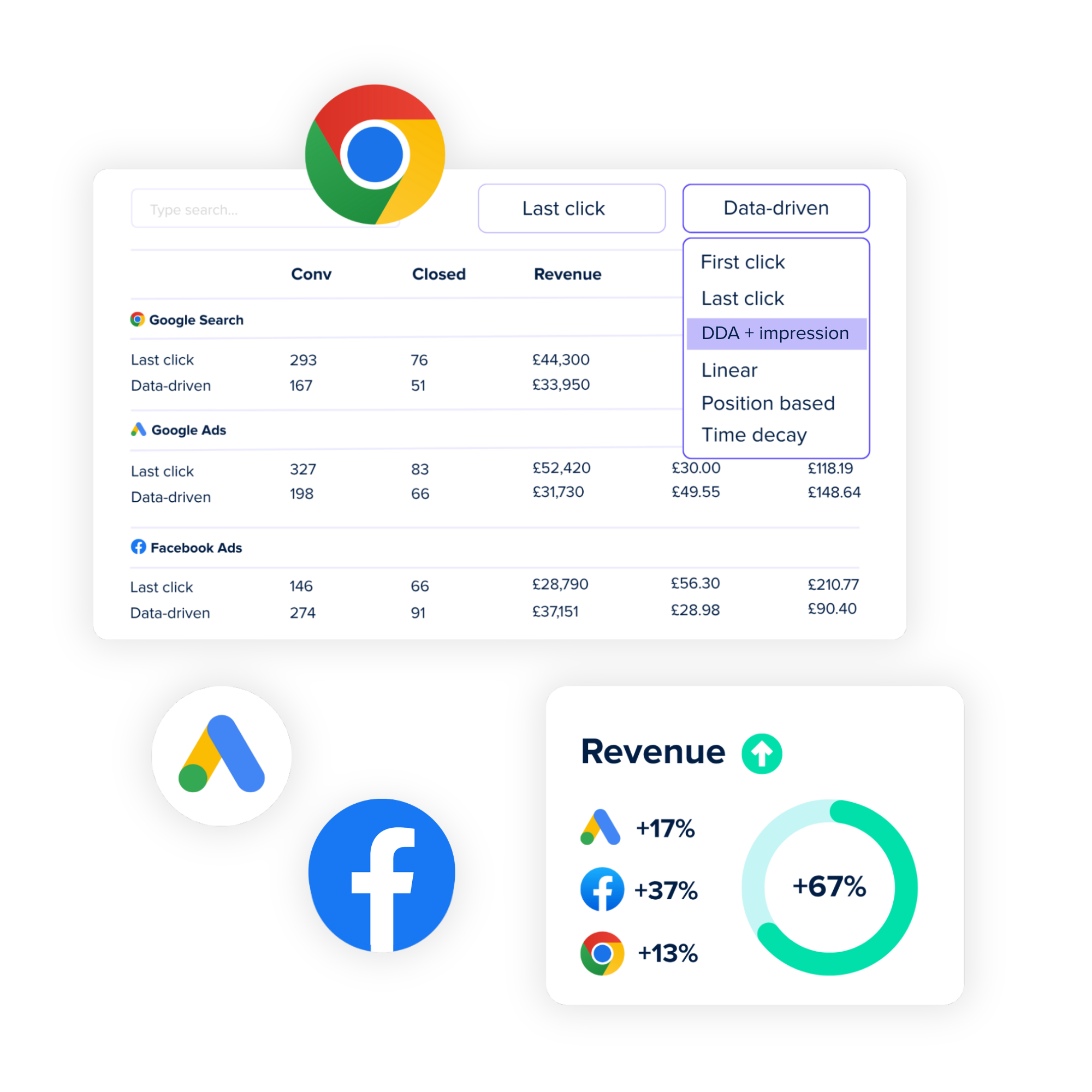 The attributed revenue data can also be fired to your marketing reporting tools such as Google Analytics, Google Ads, Facebook Ads and more.