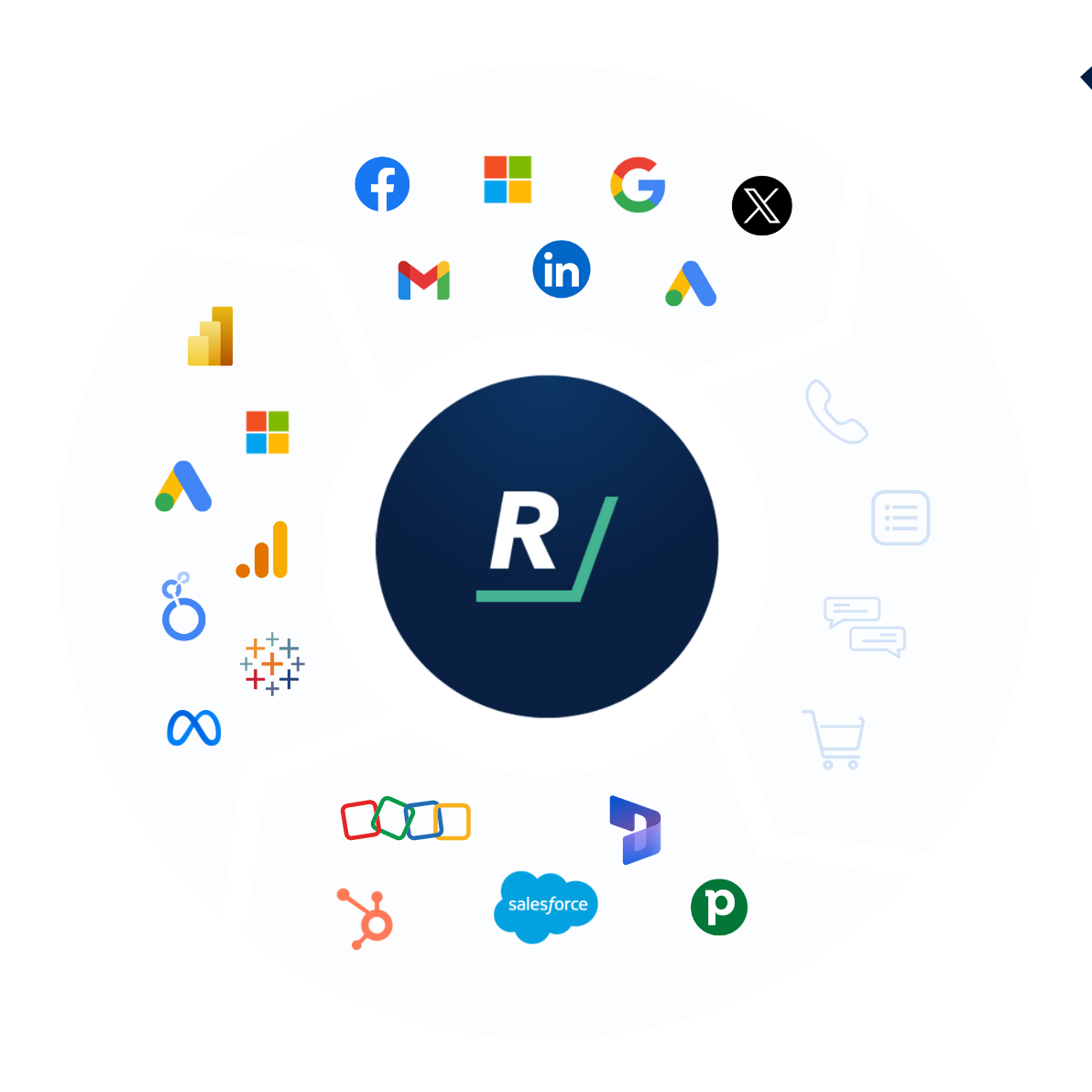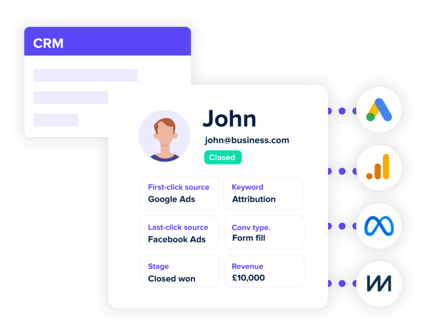 The conversion data is sent to your CRM or sales reporting tools alongside marketing data such as channel, source, campaign, keyword and landing page.