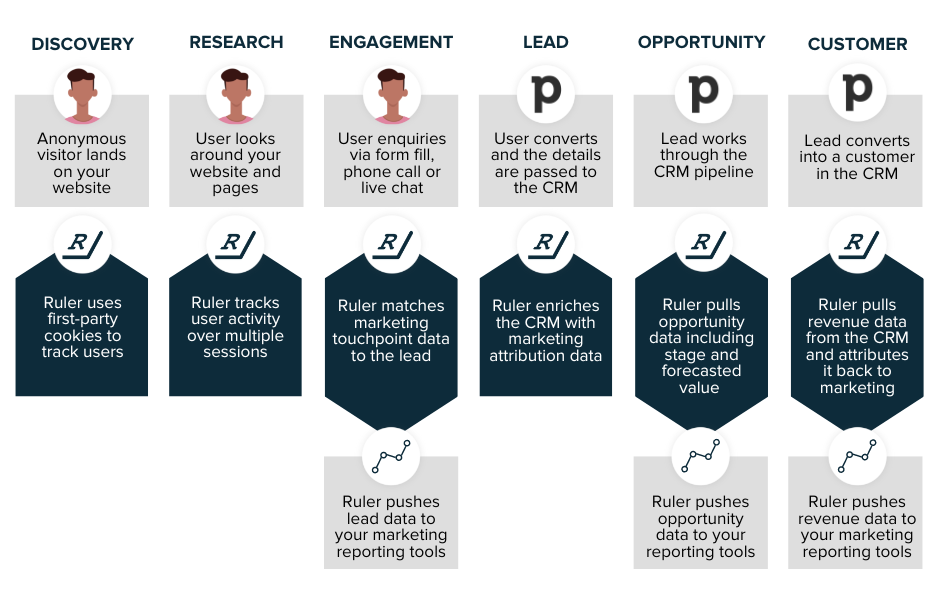 Ruler will ensure your data is captured on a visitor level so that it can match leads, conversions or sales back to the marketing touchpoints that generated them across multiple channels, ads and keywords.