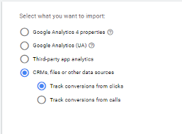 Select CRMs, Files, or Other Sources > Track conversions from clicks.