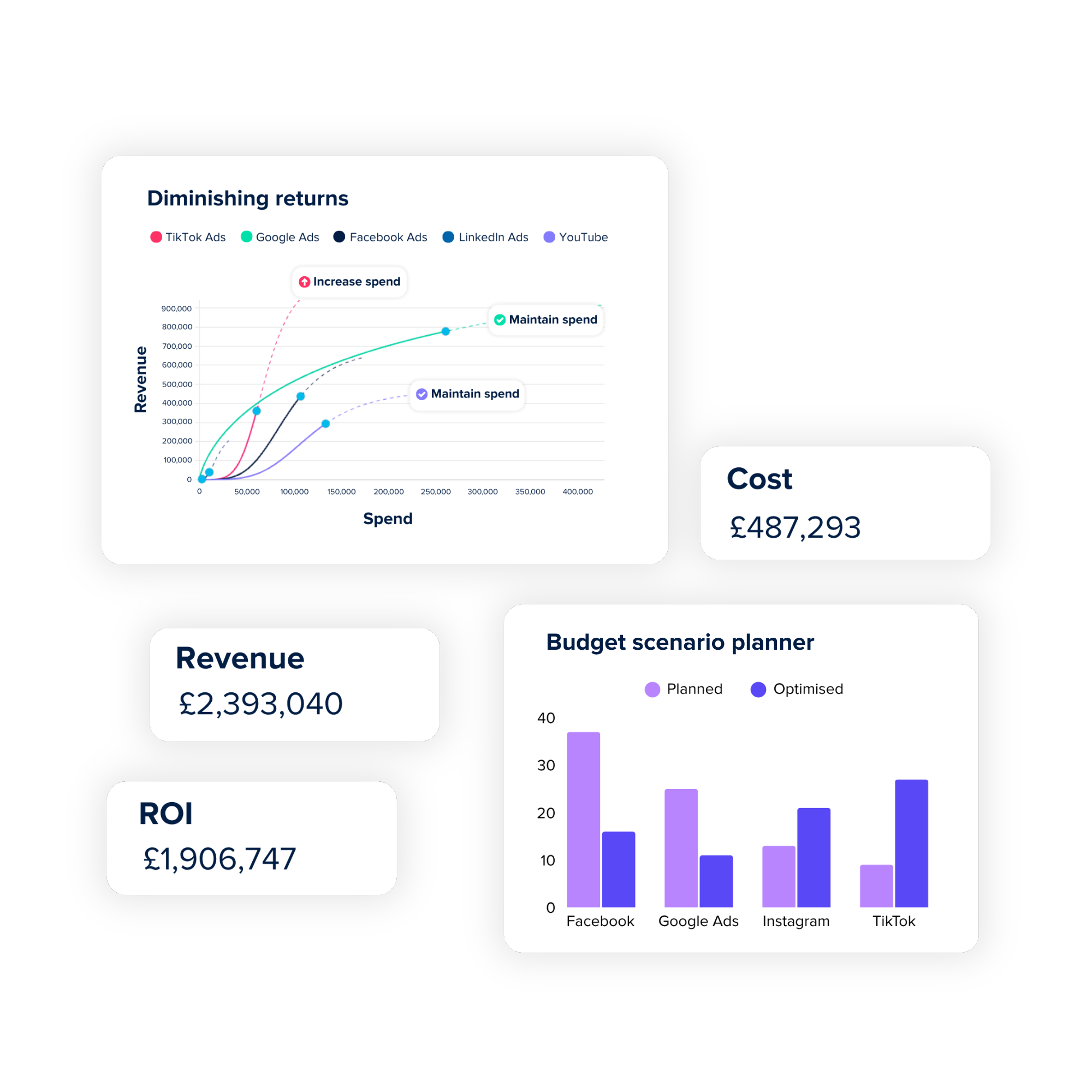 The attributed revenue data can also be fired to your marketing reporting tools such as Google Analytics, Google Ads, Facebook Ads and more.