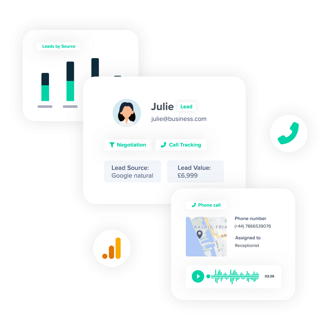 The conversion data is sent to your CRM or sales reporting tools alongside marketing data such as channel, source, campaign, keyword and landing page.